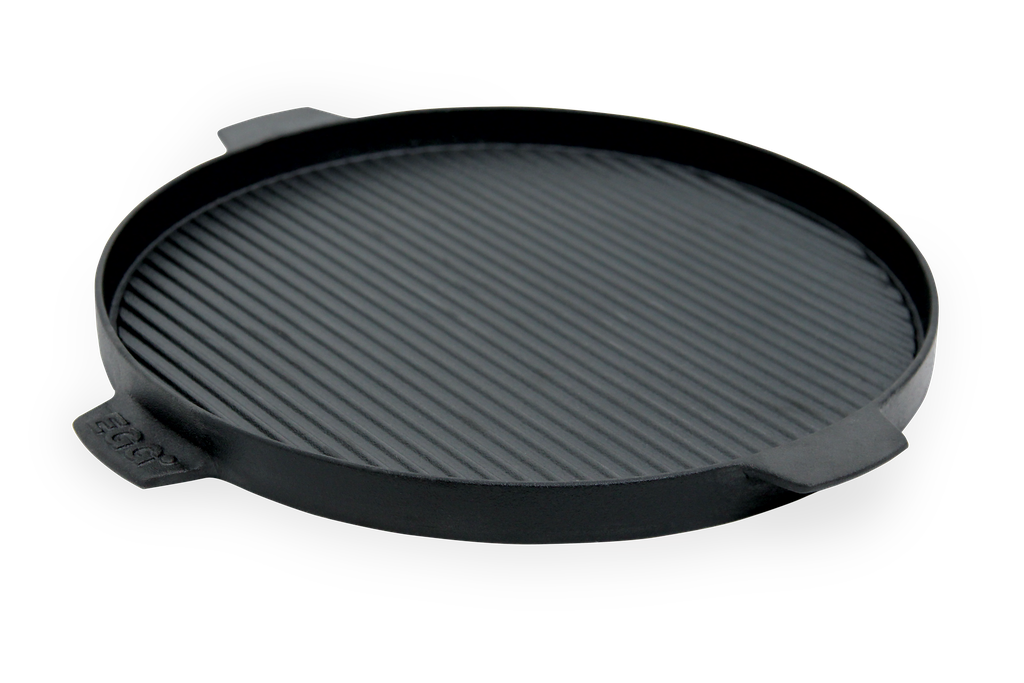The dual-sided design of the 14 in / 36 cm Cast Iron Plancha Griddle is ideal for searing meats and seafood with a flavor-packed crust, sautéing vegetables and even grilling sandwiches and paninis. Featuring four convenient handles for safe and easy lifting, the Plancha Griddle is also perfect for cooking your breakfast favorites … use the flat side for pancakes and eggs, the ridged side for sausage and bacon. Authentic, high temperature “steak house” grilling is quick, easy and delicious!